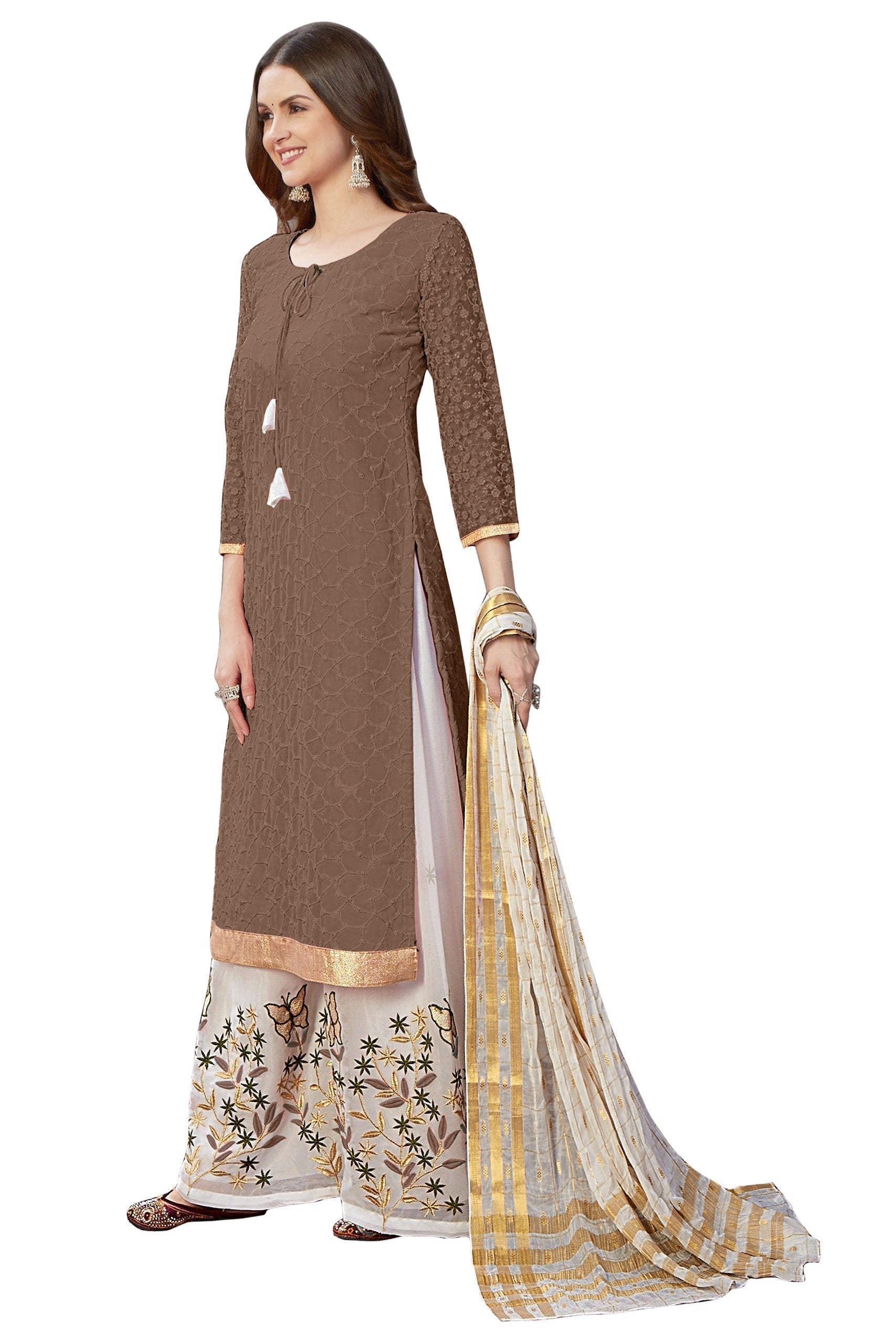 Bottom Fabric : heavy Gerogette With Beautiful Emroidory Work. (2.5Mtr)