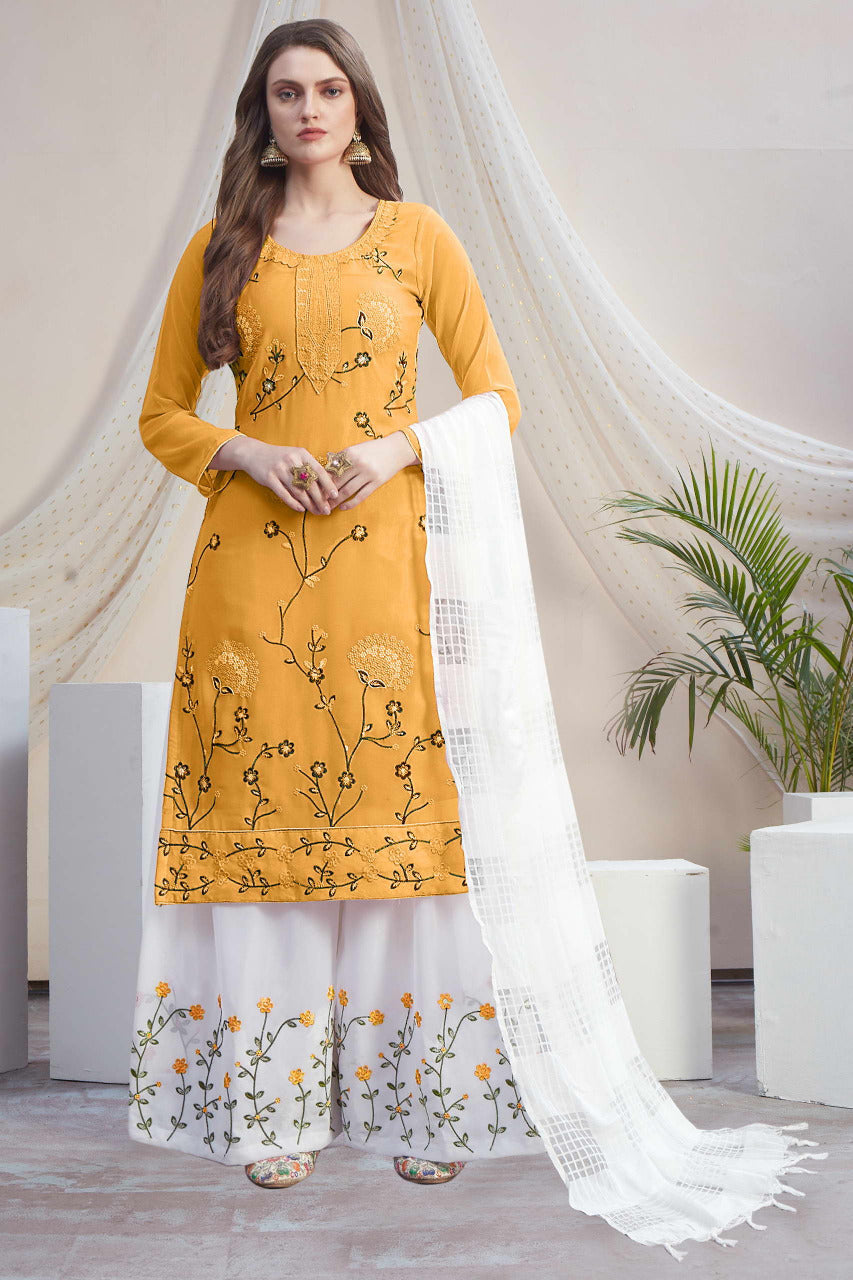 Fancy Georgette With Soft Silk Inner Semi-Stitched Designer Gown Suit HF1161-2