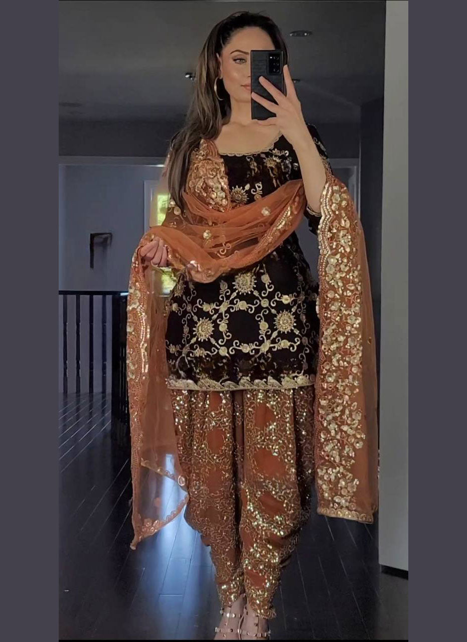 π*Dhoti Salwar* : Faux Georgette With Embroidery 5 mm Sequence Work.