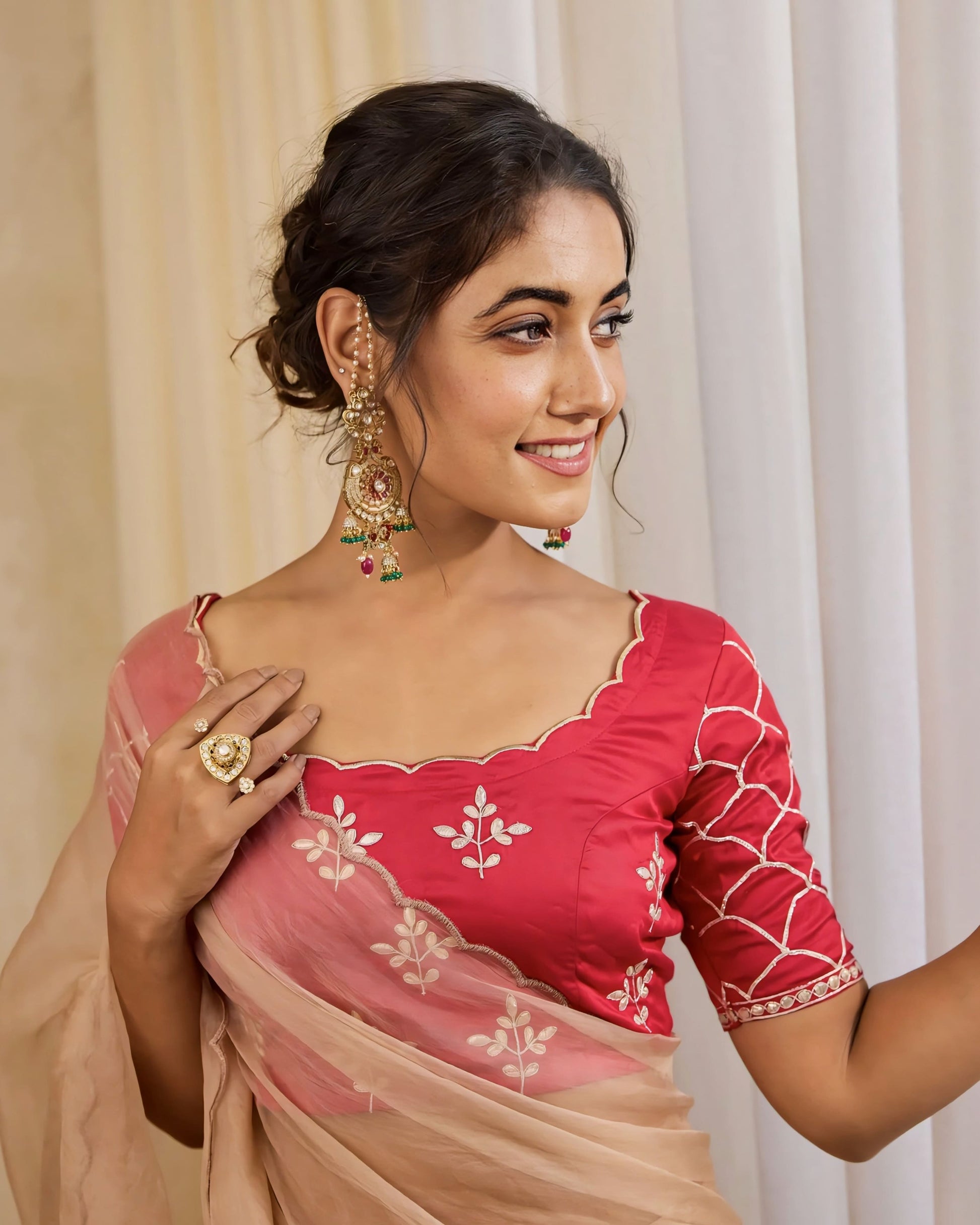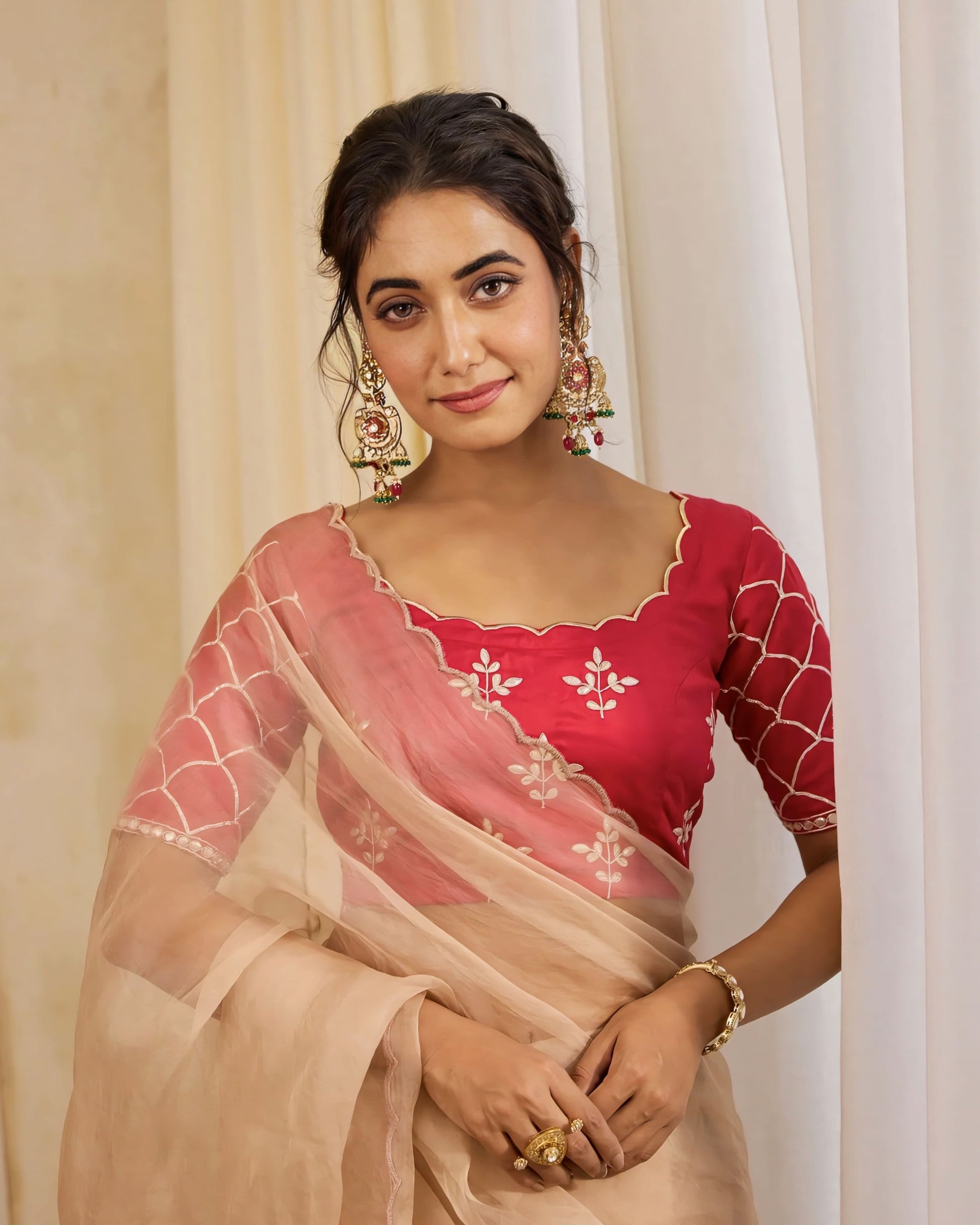 Paired effortlessly with net, chiffon, organza, or silk sarees, this blouse strikes the perfect balance between traditional craftsmanship and modern elegance.