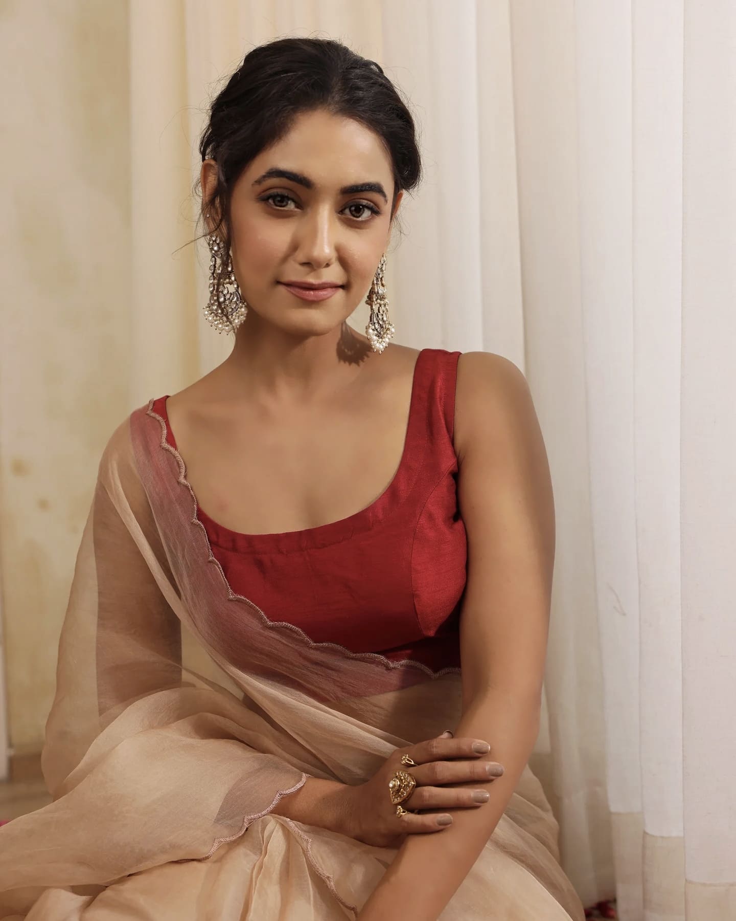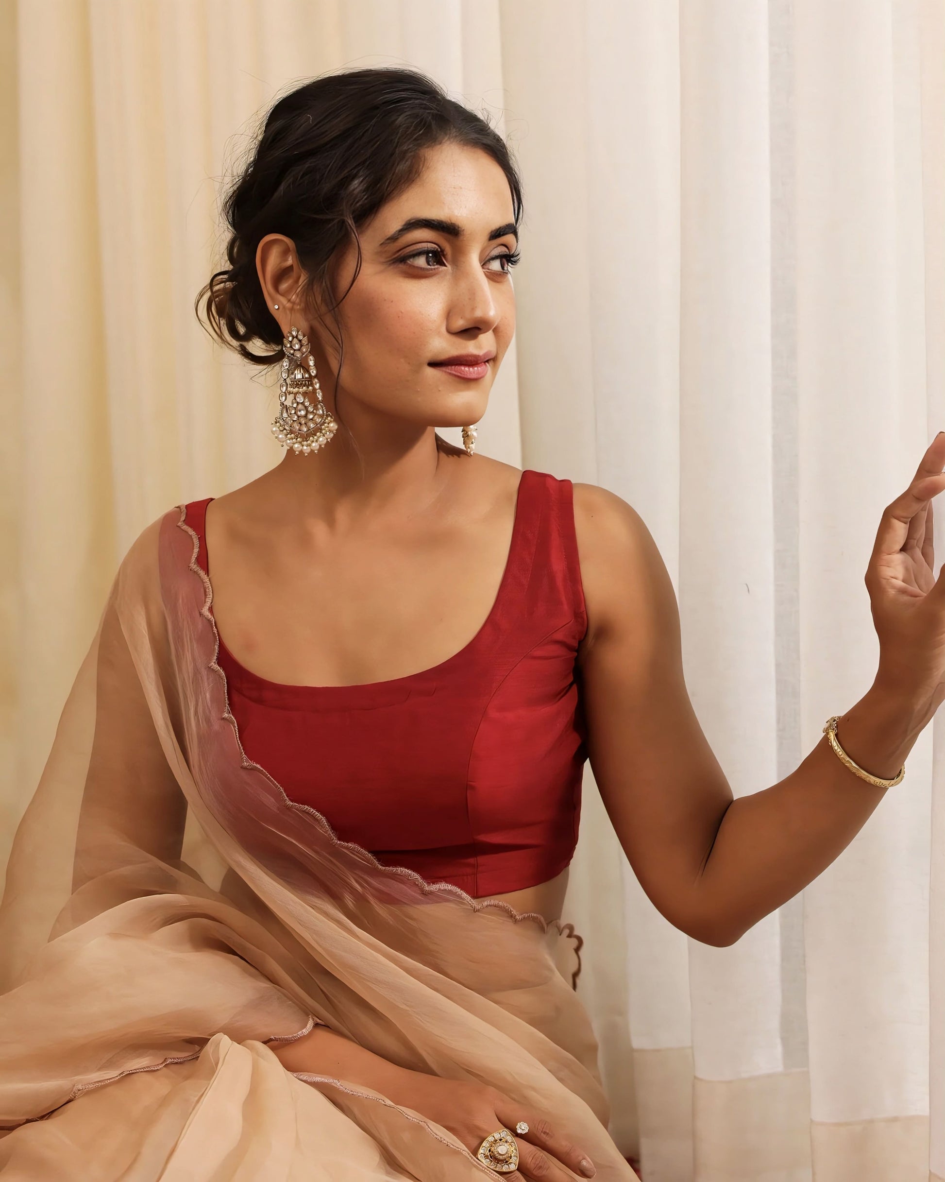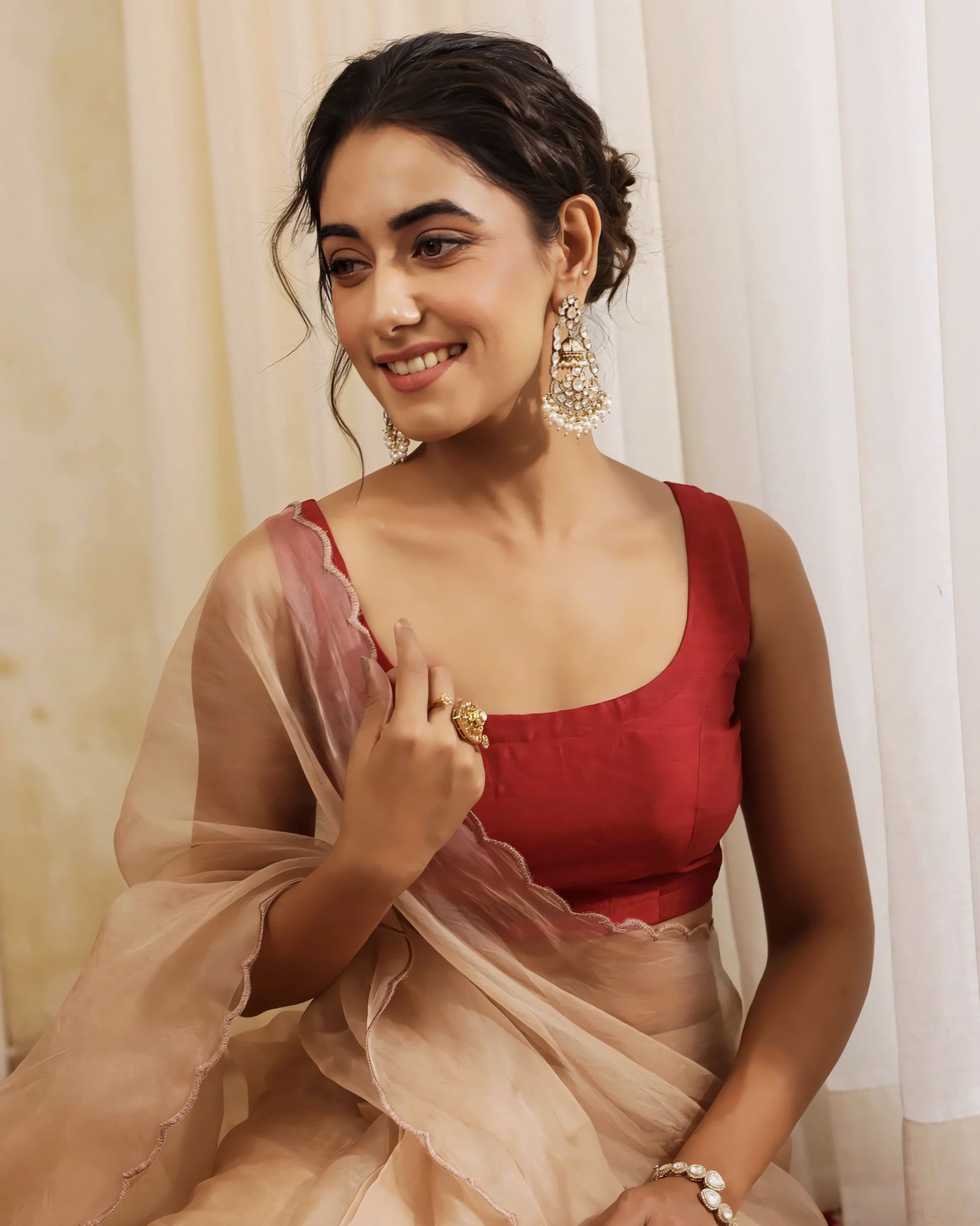 Ideal for weddings, festive functions, receptions, poojas, and evening celebrations. Style it with organza, silk, chiffon, or net sarees in beige, gold, ivory, or contrasting jewel tones. Complete the look with statement earrings and a neat bun or soft waves for a polished finish.
